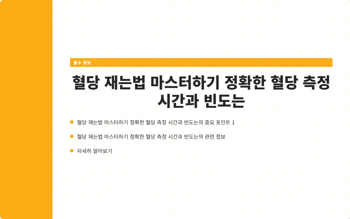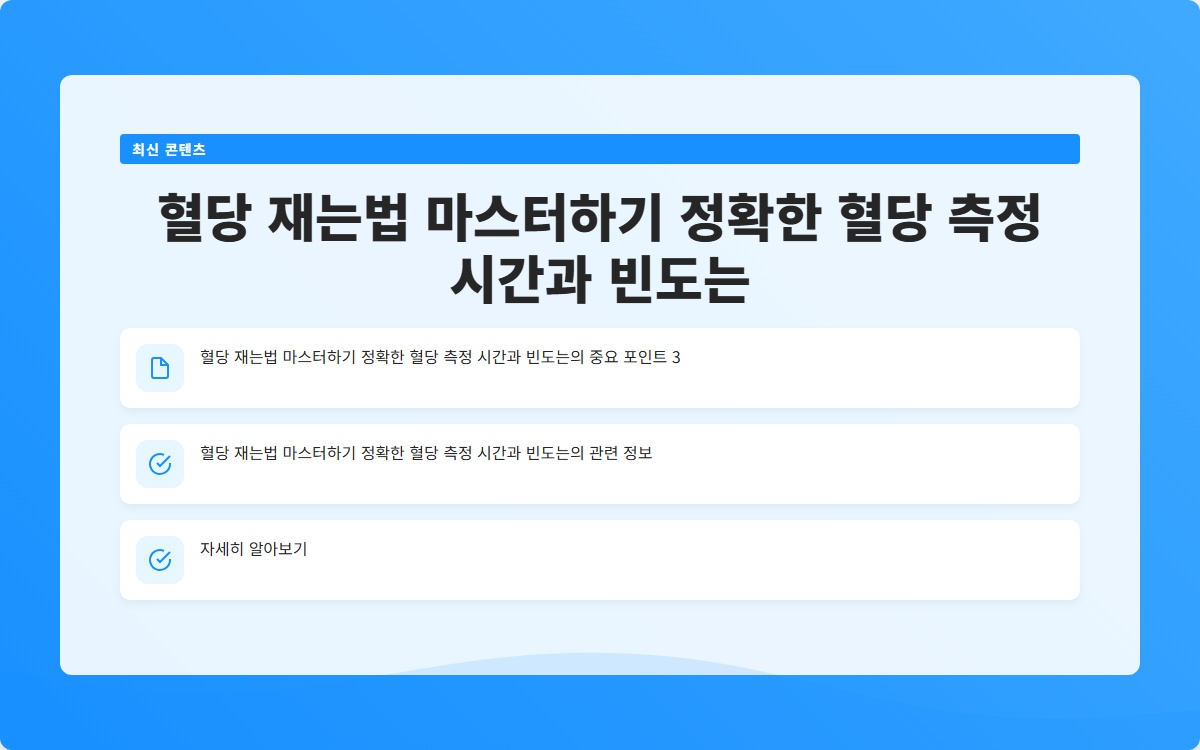 혈당을 정기적으로 측정하는 것은 당뇨병 관리의 핵심입니다. 정확한 혈당 측정시간과 빈도는 혈당 수치를 안정적으로 조절하고, 합병증을 예방하는 데 중요합니다. 이 글에서는 혈당 측정의 비법과 함께 올바른 측정 방법을 자세히 설명하겠습니다.