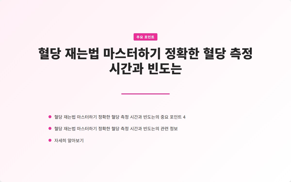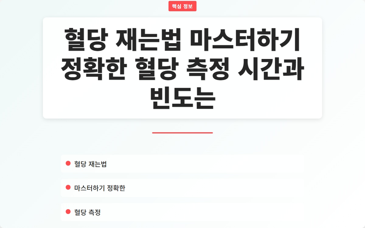 혈당을 정기적으로 측정하는 것은 당뇨병 관리의 핵심입니다. 정확한 혈당 측정시간과 빈도는 혈당 수치를 안정적으로 조절하고, 합병증을 예방하는 데 중요합니다. 이 글에서는 혈당 측정의 비법과 함께 올바른 측정 방법을 자세히 설명하겠습니다.