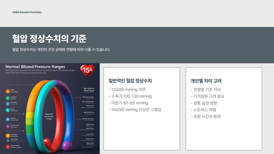 혈압정상수치는 심장이 혈액을 내보낼 때 혈관에 가해지는 압력을 의미합니다. 정상 혈압은 일반적으로 수축기 혈압이 120mmHg 이하, 이완기 혈압이 80mmHg 이하인 경우를 말합니다. 하지만 이 수치는 개인의 나이, 성별, 체중, 운동량 등에 따라 다를 수 있습니다. 따라서, 나의 건강 상태를 고려하여 적절한 수치를 이해하는 것이 중요합니다.