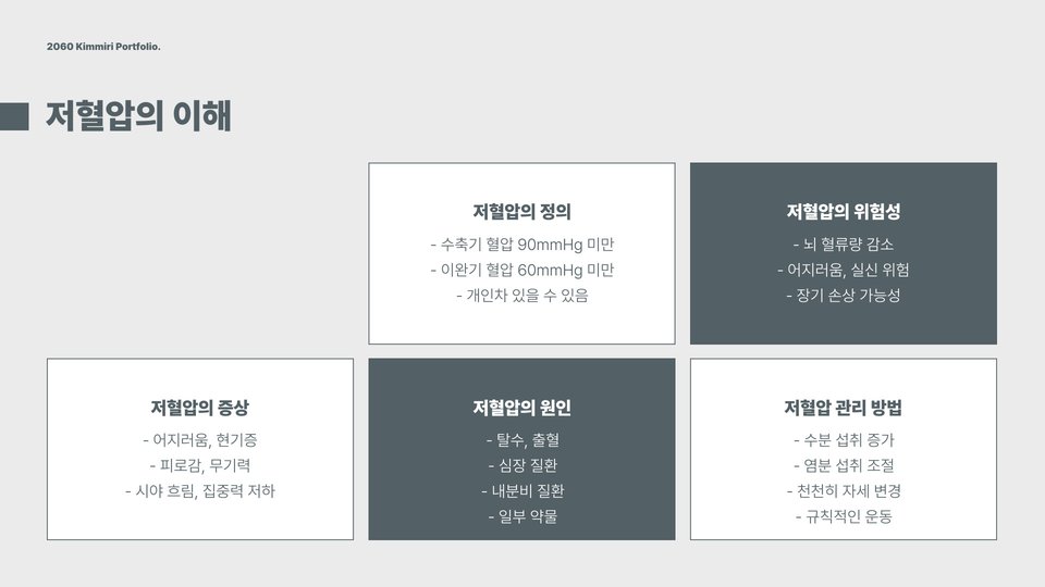 이와 반대로, 저혈압도 위험할 수 있습니다. 특히, 시력이 흐려지거나 어지럼증이 생기는 경우, 일상생활에 지장을 초래할 수 있습니다. 다양한 건강상의 문제를 예방하기 위한 노력으로, 적절한 혈압 수준을 유지하는 것이 중요합니다.