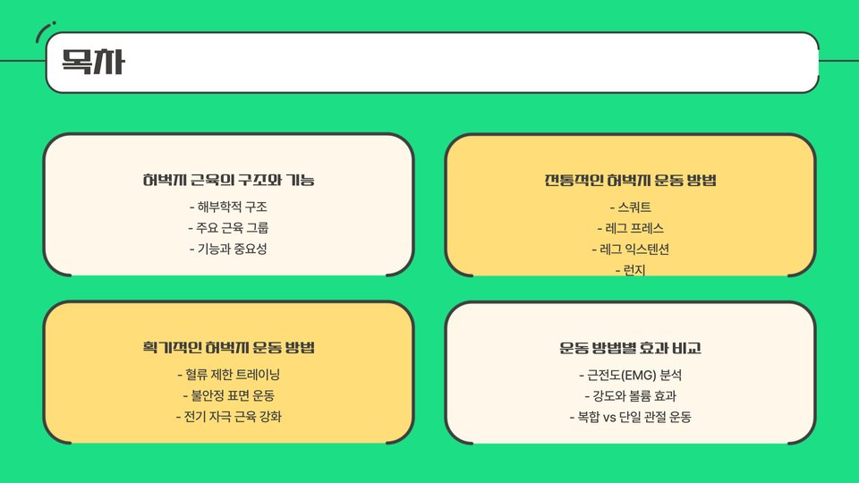 허벅지 근육 운동은 다양한 방법으로 접근할 수 있으며, 각각의 운동은 서로 다른 효과를 가지고 있습니다. 자신에게 맞는 운동을 찾아서 꾸준히 실시하는 것이 중요합니다. 운동을 통해 허벅지 근육을 강화하면, 일상생활에서도 더 많은 활동성을 느낄 수 있을 것입니다.