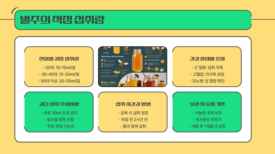 벌주는 다양한 방법으로 섭취할 수 있습니다. 가장 일반적인 방법은 직접 섭취하는 것입니다. 하루에 한 스푼 정도를 꿀과 함께 섭취하면 좋습니다. 또한, 요거트나 스무디에 추가하여 맛과 건강을 동시에 챙길 수 있습니다.