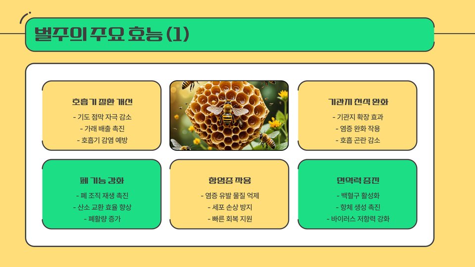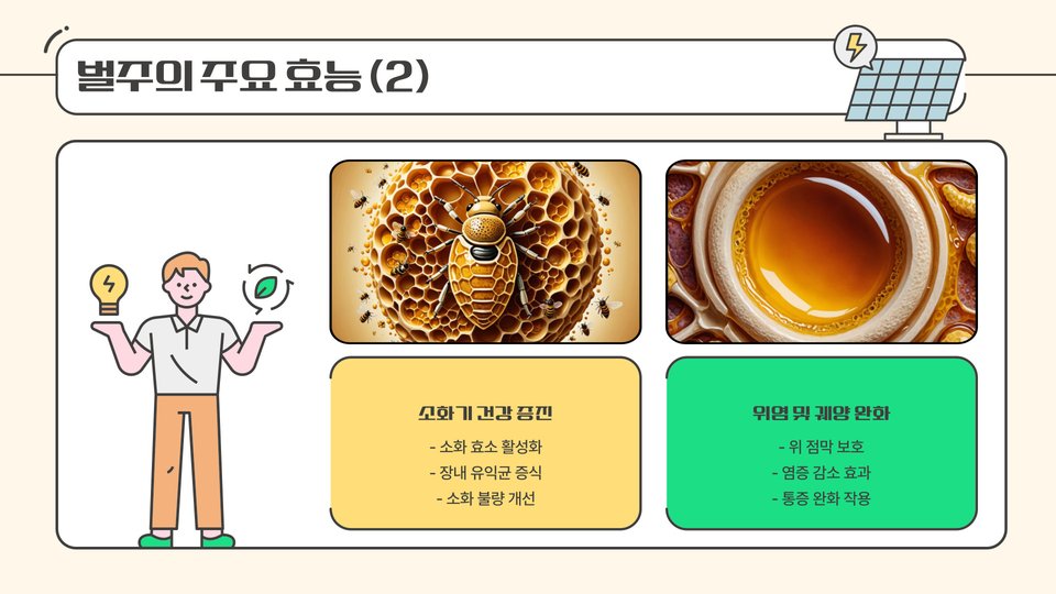 - 벌주는 면역력 강화, 피로 회복, 피부 개선에 효과적입니다.