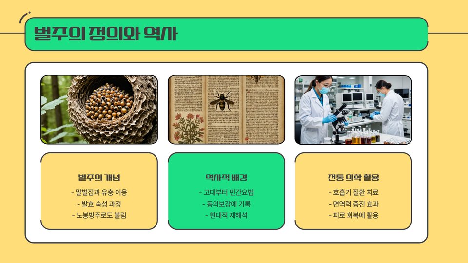 벌주는 태고적부터 전해 내려오는 자연의 선물로, 그 유익한 효능은 현대 과학에 의해 뒷받침되고 있습니다. 벌주의 효능은 자연 치유력과 면역력 강화를 통해 오늘날 건강 관리의 새 지평을 열고 있습니다. 특히, 2025년을 맞이하여 벌주의 효능을 전방위적으로 알아보는 것은 건강한 삶을 위한 지혜가 될 것입니다.