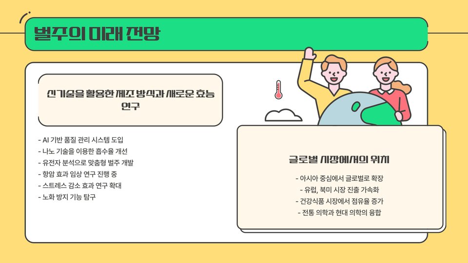 벌주는 자연의 혜택을 담고 있는 음료로, 다양한 건강 효능을 지니고 있습니다. 2025년을 맞이하여 자연식품의 가치를 재발견하고, 벌주의 건강 효과를 적극 활용해 보는 것은 좋은 선택이 될 것입니다. 특히, 면역력 강화와 스트레스 해소에 도움을 줄 수 있는 벌주는 현대인의 삶에서 소중한 자원이 될 것입니다.