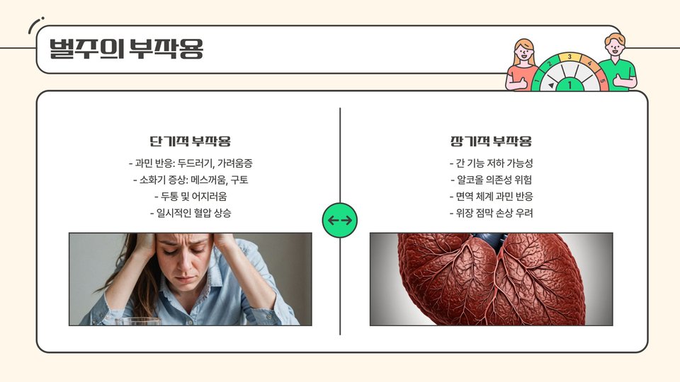 둘째로, 벌주는 과다 섭취 시 소화 불량을 유발할 수 있습니다. 특히, 위장에 민감한 분들은 소량부터 시작하여 점차 양을 늘리는 것이 좋습니다.
