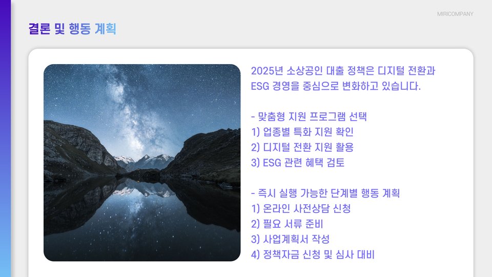2025년을 위한 소상공인사업자대출은 소상공인의 성공적인 사업 운영에 필수적입니다. 전문가의 조언을 통해 적절한 대출 상품을 선택하고, 대출 신청 시 유의사항을 잘 준수한다면, 더 나은 조건으로 자금을 확보할 수 있을 것입니다. 여기서 강조할 점은 준비와 계획이 대출 성공의 열쇠라는 것입니다.