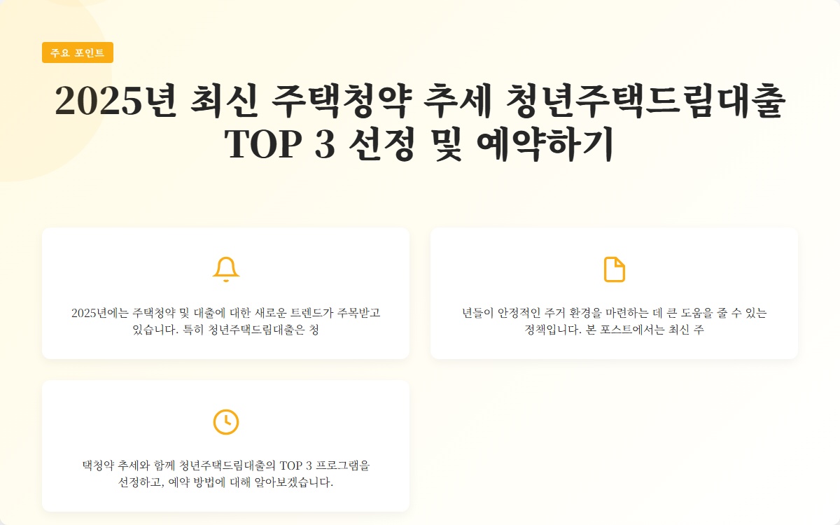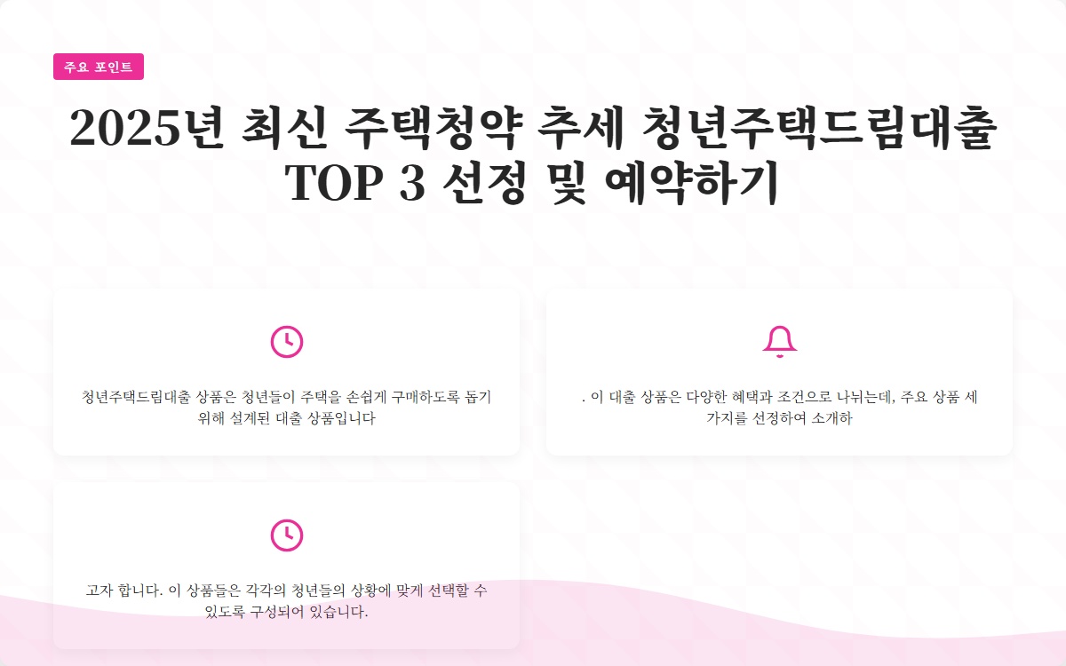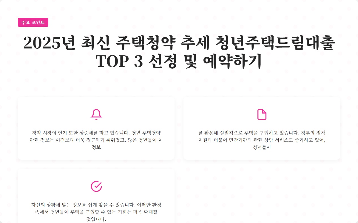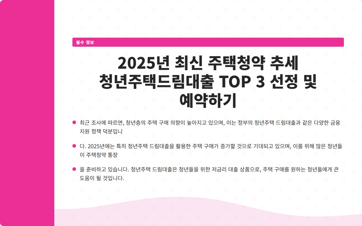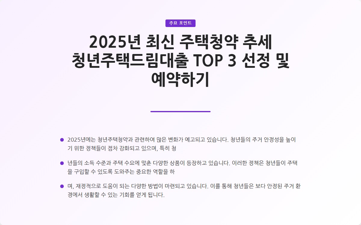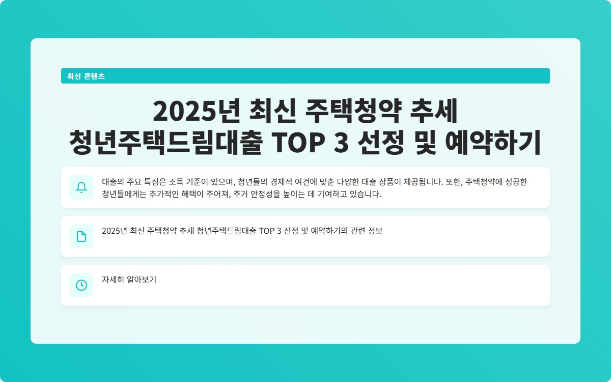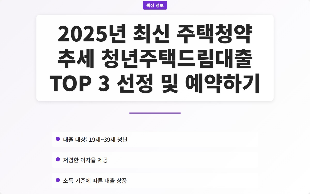 2025년 최신 주택청약 추세 청년주택드림대출 TOP 3 선정 및 예약하기