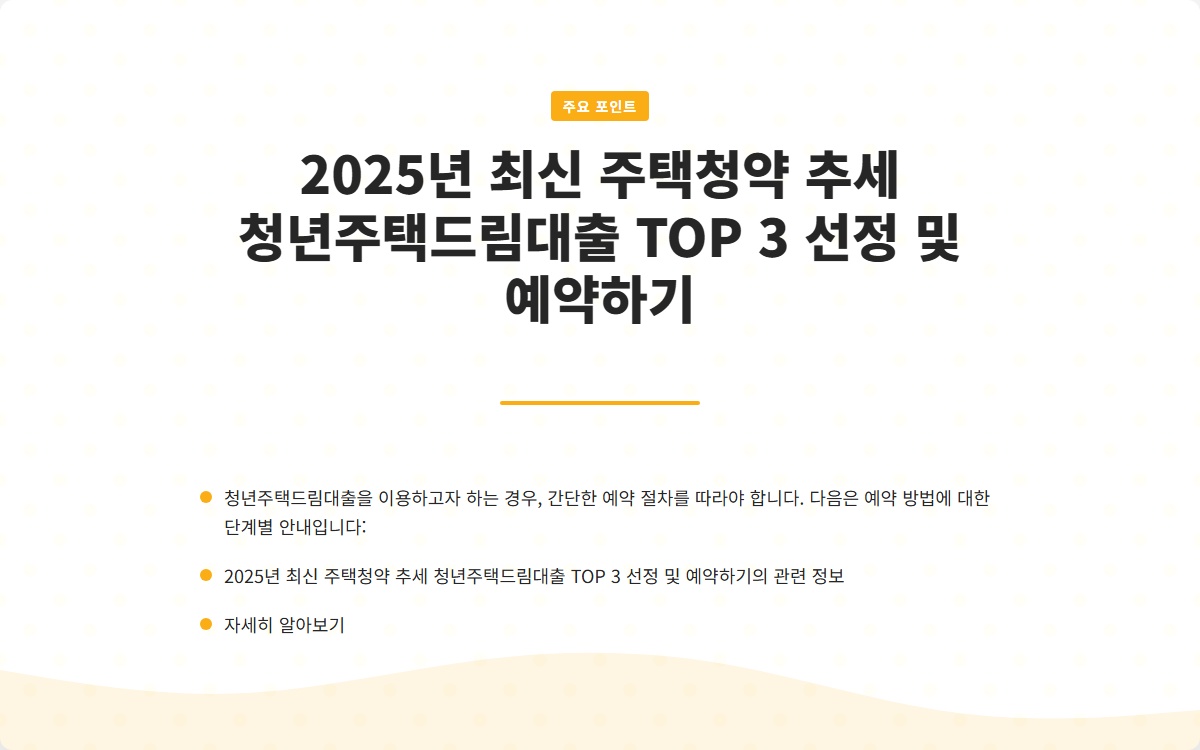 2025년 최신 주택청약 추세 청년주택드림대출 TOP 3 선정 및 예약하기