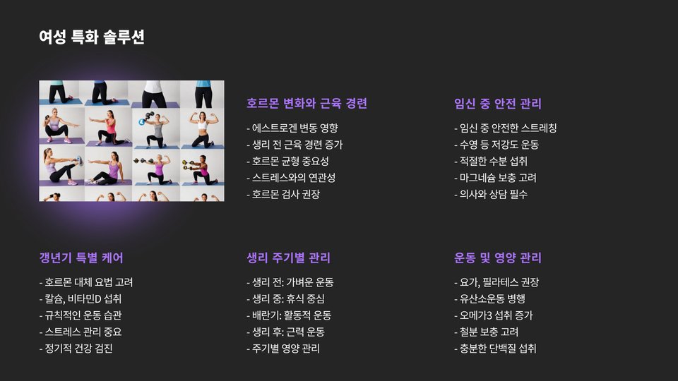 - 적절한 운동 프로그램을 설계하여 무리하지 않도록 하세요.