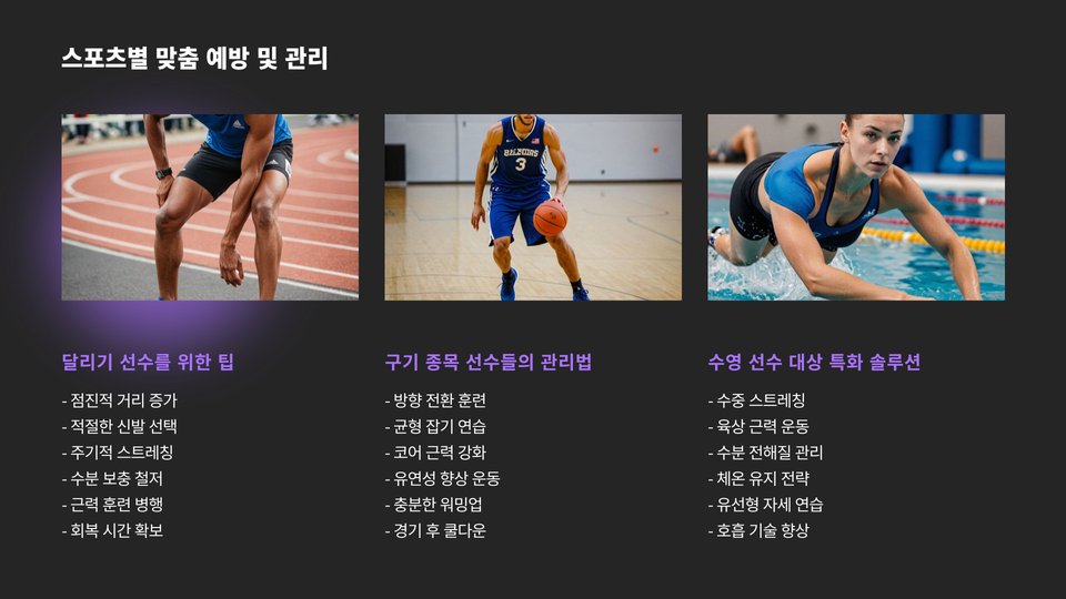 - 적절한 운동 프로그램을 설계하여 무리하지 않도록 하세요.