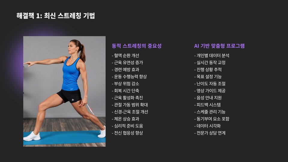 - 허벅지 앞쪽과 뒤쪽을 집중적으로 늘리는 운동을 포함하세요.