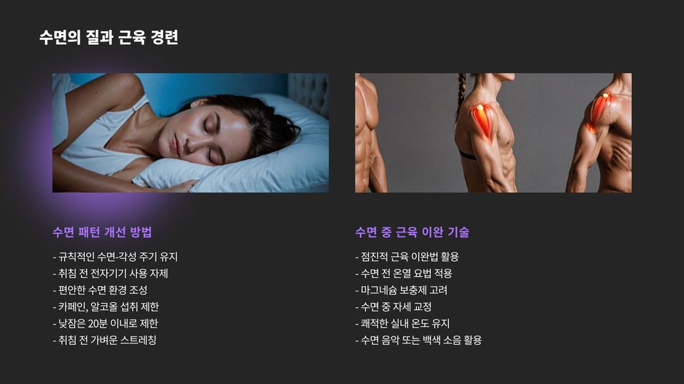 - 적절한 휴식과 수면으로 근육 회복 촉진.