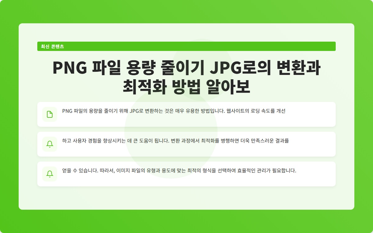 PNG 파일 용량 줄이기: JPG로의 변환과 최적화 방법 알아보