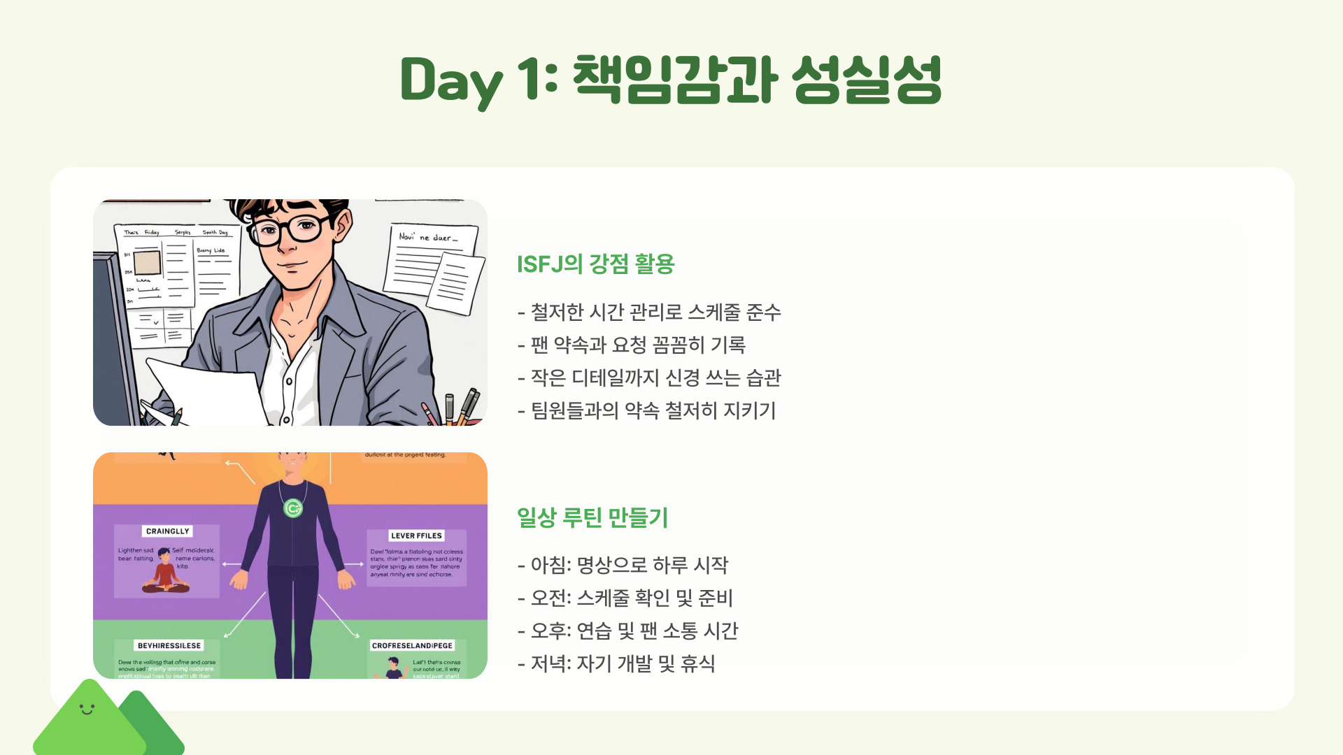 - 성실하게 노력하며 책임감을 가진 모습