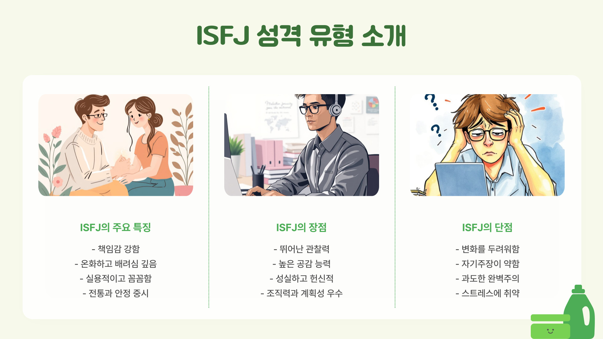 중요 팁: ISFJ 성격을 가진 이들은 자신의 감정을 잘 표현하지 못하는 경향이 있으므로, 정기적으로 자신을 되돌아보는 시간을 가지는 것이 중요합니다.
