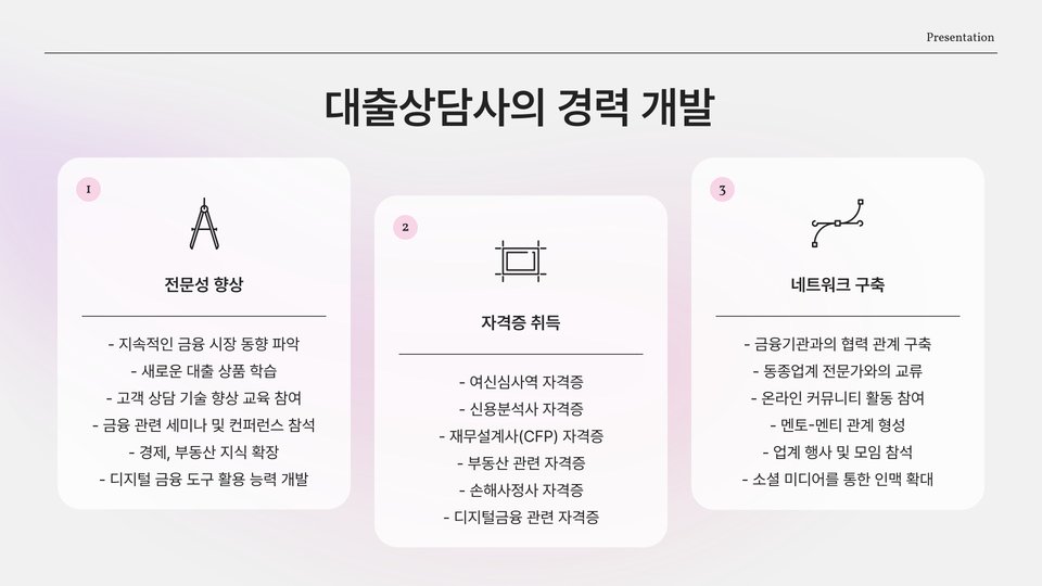또한, 등록번호를 보유한 대출 상담사는 금융 기관과의 연계를 통해 보다 유리한 조건의 대출 상품을 고객에게 제안할 수 있는 장점이 있습니다. 이는 결국 고객의 불필요한 금융 비용을 줄이는 데 기여할 수 있습니다.
