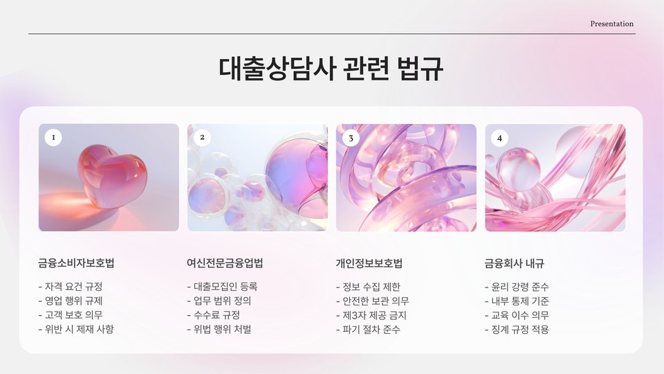 - 소비자에게 안전하고 신뢰할 수 있는 대출 상담을 제공합니다.