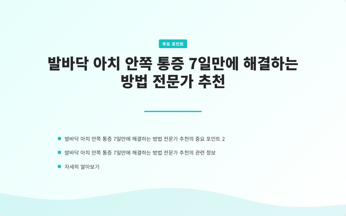 발바닥 아치 안쪽 통증은 많은 사람들에게 고통을 주지만, 전문가가 추천하는 방법을 따르면 7일 만에 개선할 수 있습니다. 통증의 원인을 파악하고, 단계별 해결책을 실천하면 여러분도 편안한 일상으로 돌아갈 수 있습니다.