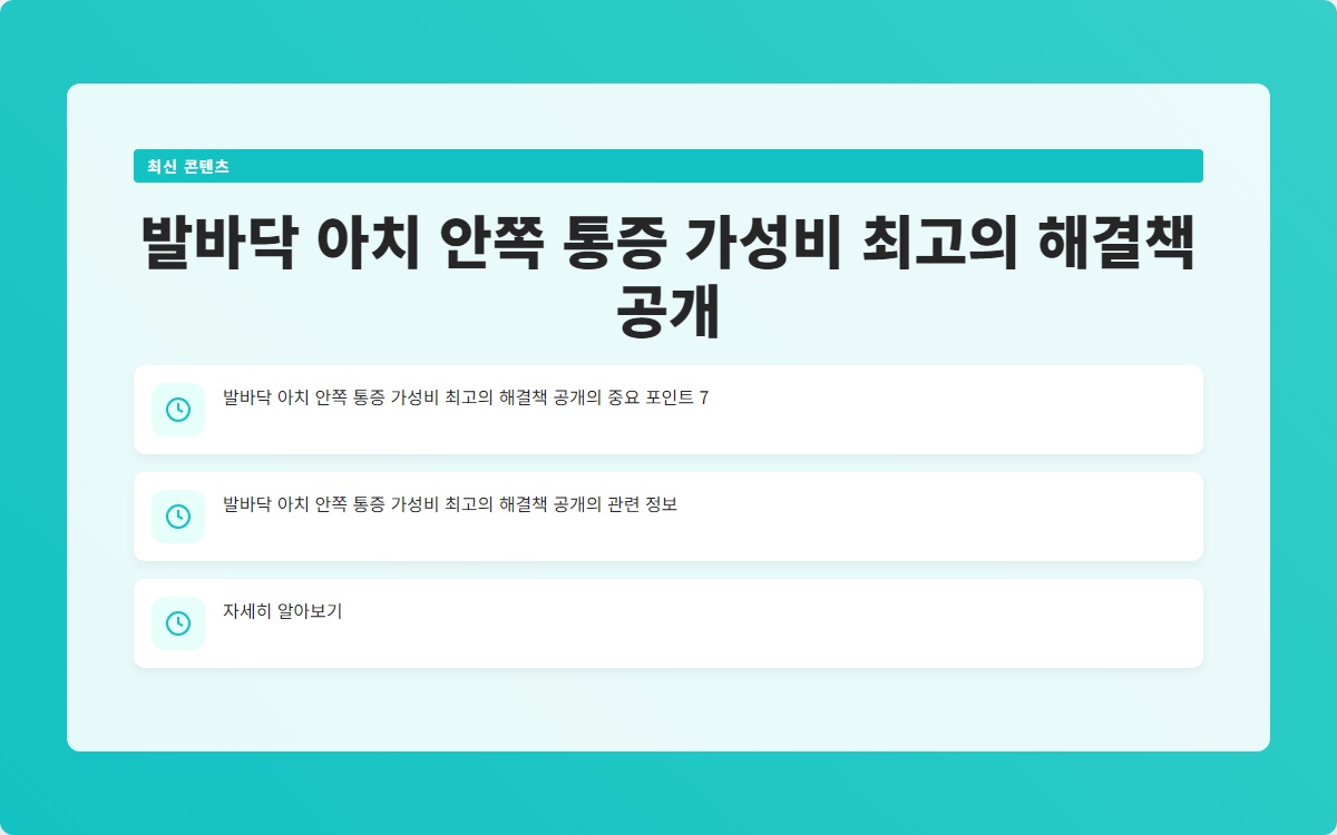 발바닥 아치 안쪽 통증, 많은 사람들이 고통받고 있는 문제입니다. 이 통증이 일상생활에 미치는 영향은 크며, 적절한 해결책을 찾는 것이 중요합니다. 그렇다면 가성비 최고의 해결책은 무엇일까요?