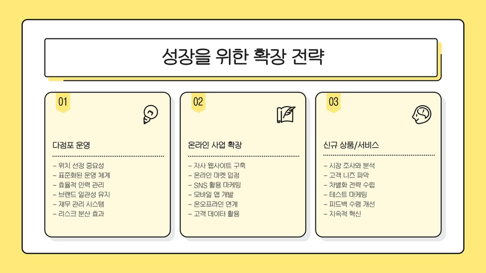 - 효율적 경영: 원가 절감 및 마케팅 전략