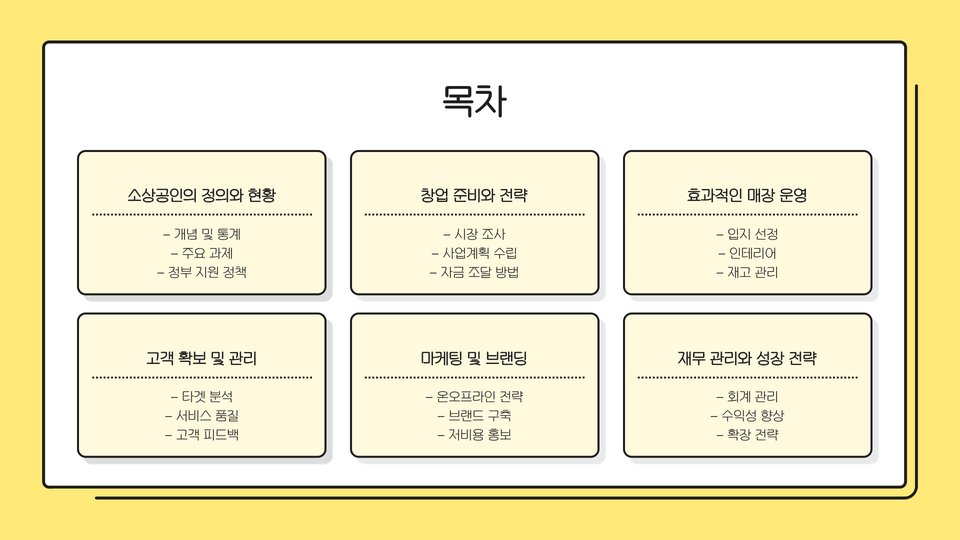 하지만 소상공인은 경쟁이 치열한 시장에서 생존하기 위해 여러 도전에 직면하게 됩니다. 재정 관리, 마케팅 전략, 고객 서비스 등 다양한 분야에서 전문성을 갖추어야 합니다. 따라서 성공적인 소상공인이 되기 위해서는 체계적이고 실질적인 접근이 필요합니다.
