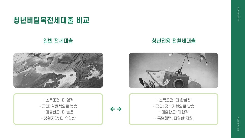 이와 함께, 청년버팀목전세대출은 주택금융공사와 제휴된 금융기관에서 제공되므로 대출 과정이 보다 투명하게 운영됩니다. 대출을 신청하고 승인받는 과정에서 부담이 덜한 환경이 조성됩니다. 이러한 점은 청년들이 이것저것 고민할 필요 없이 신속하게 주거를 마련하는 데 도움을 줍니다.