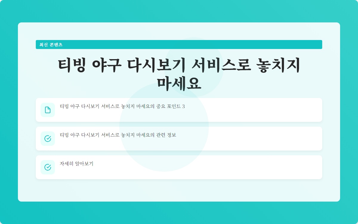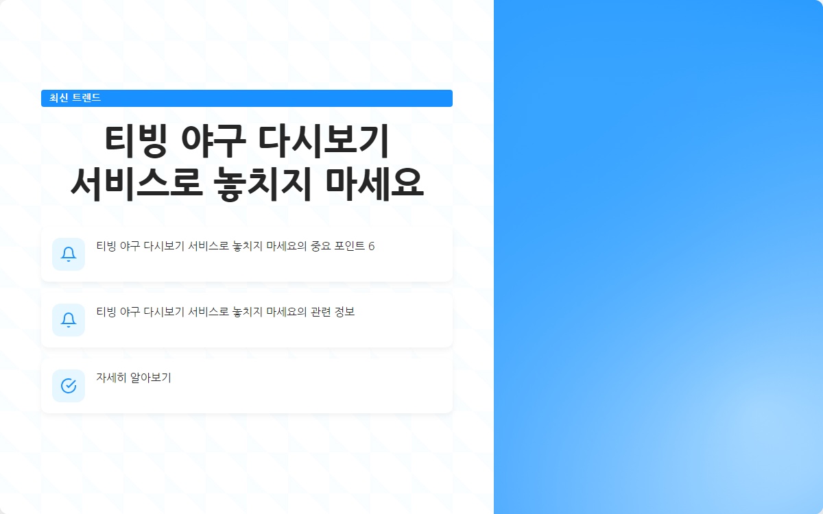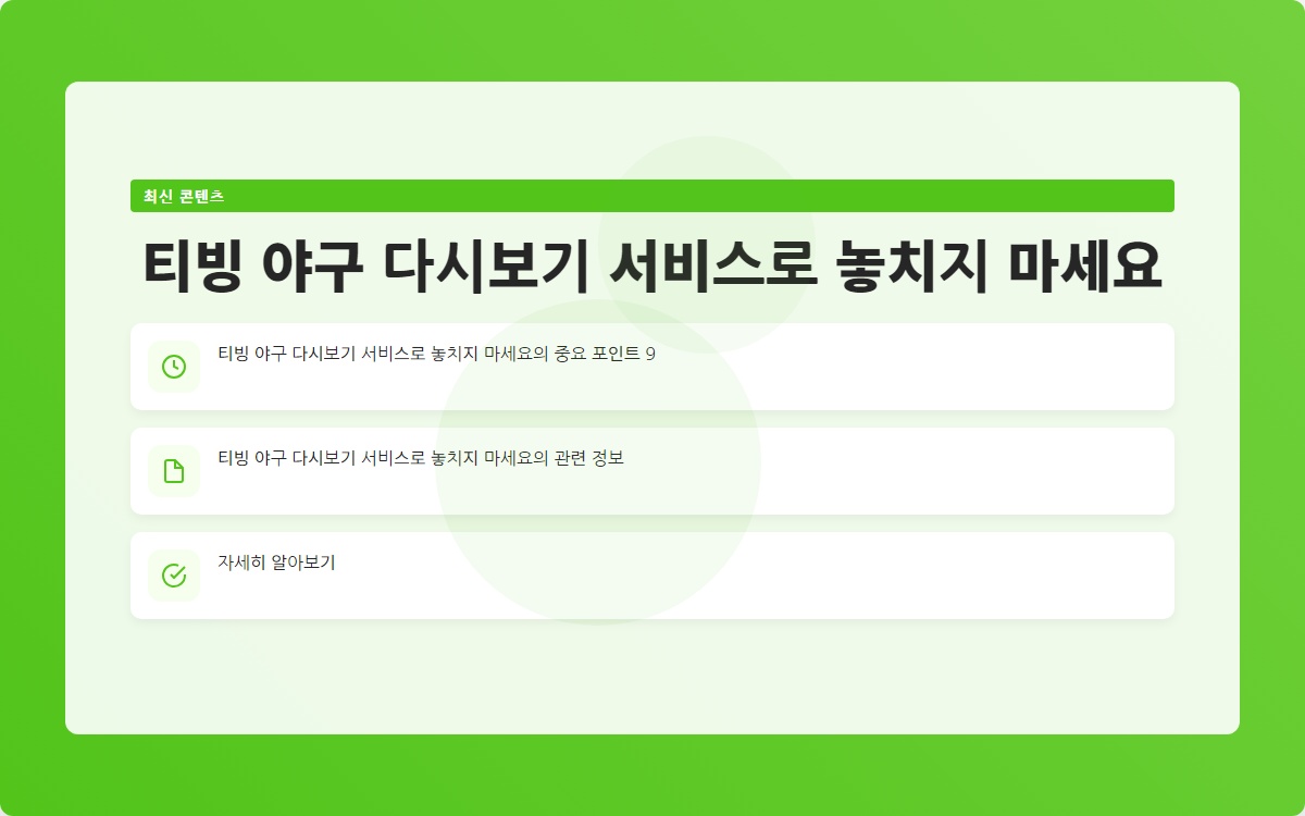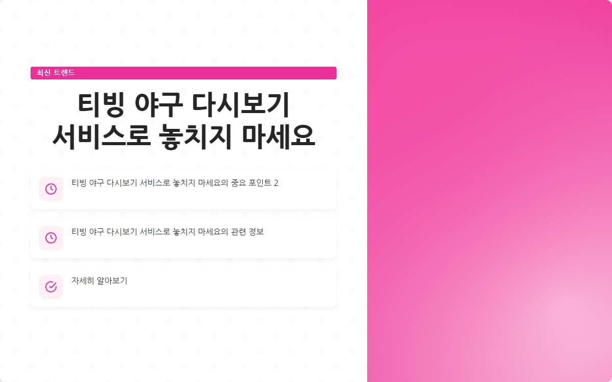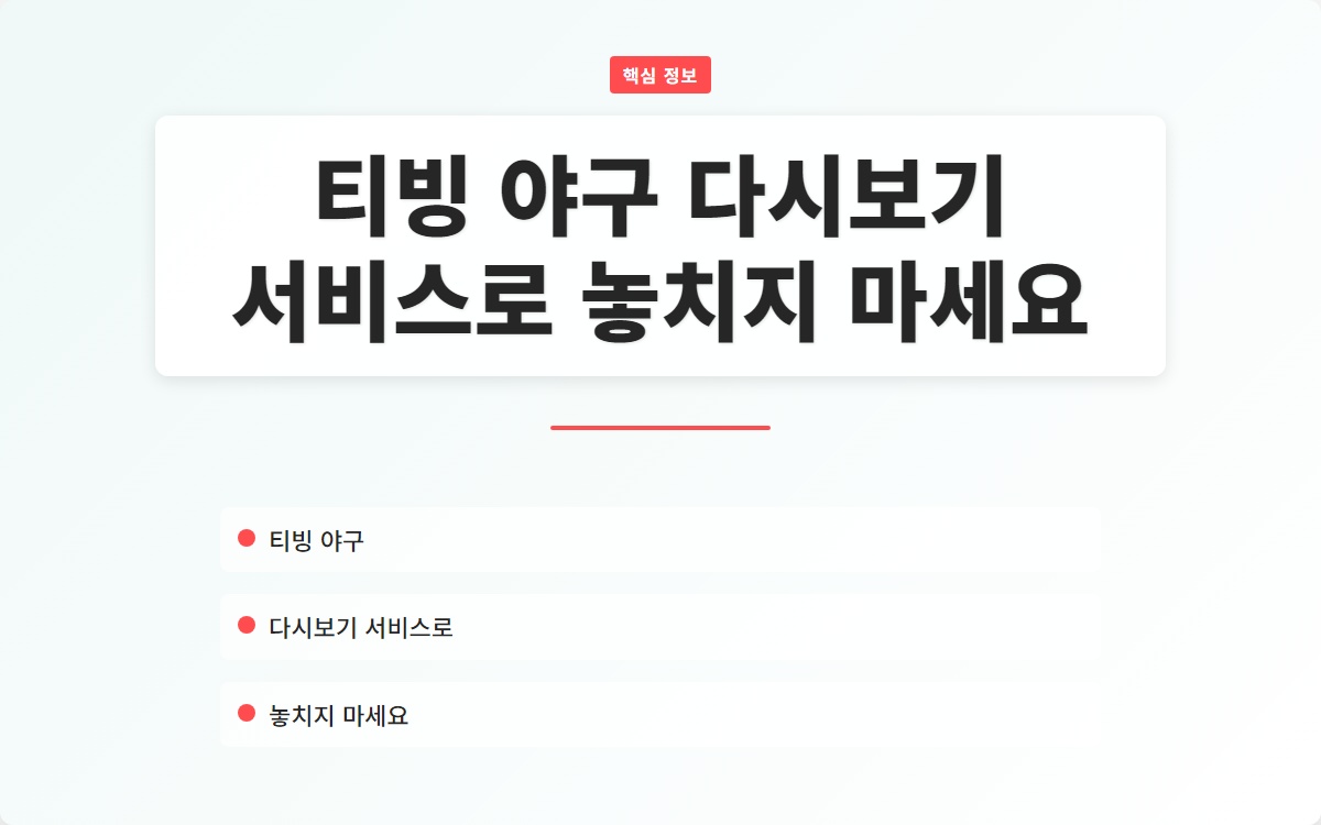 티빙에서 제공하는 야구 다시보기 서비스를 이용하여 놓친 경기를 언제든지 즐겨보세요!