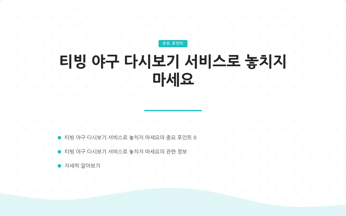 - 티빙의 야구 다시보기 서비스로 놓친 경기를 간편하게 시청할 수 있습니다.