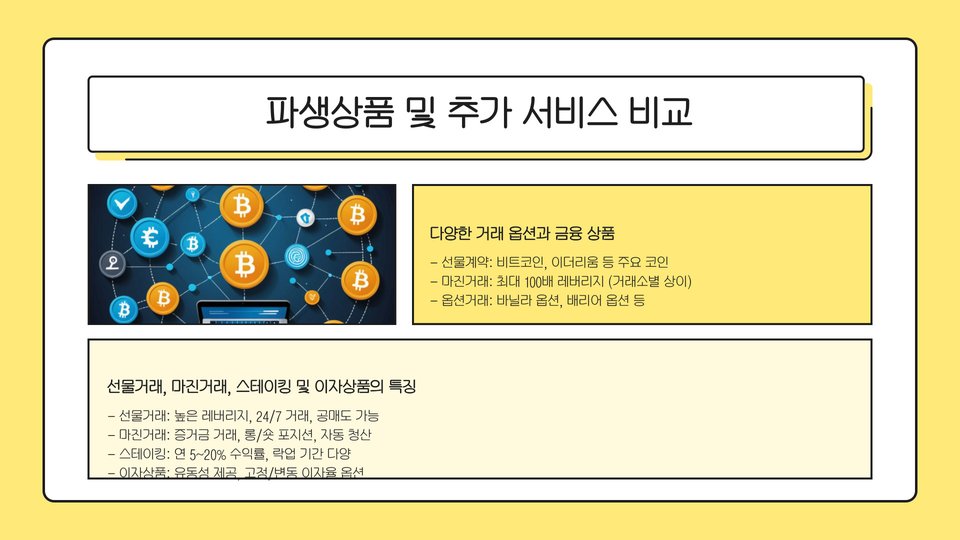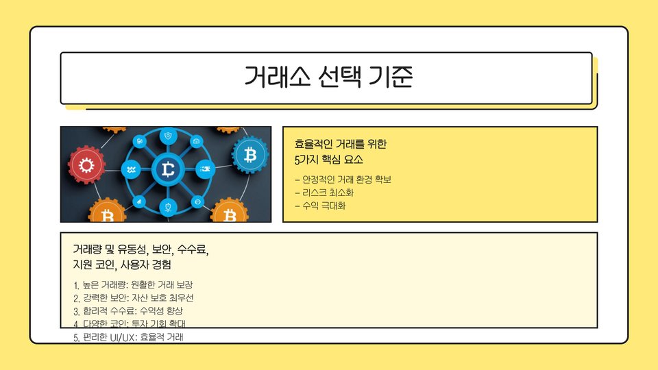 세 번째로 중요한 요소는 거래 가능한 암호화폐 종류입니다. 모든 거래소가 동일한 암호화폐를 지원하지 않기 때문에, 투자하고자 하는 코인이 해당 거래소에서 거래 가능한지 확인해야 합니다. 마지막으로, 고객 지원 서비스도 선택의 중요한 요소입니다. 적절한 고객 지원이 없다면, 문제가 발생했을 때 빠르게 해결할 수 없기 때문입니다.