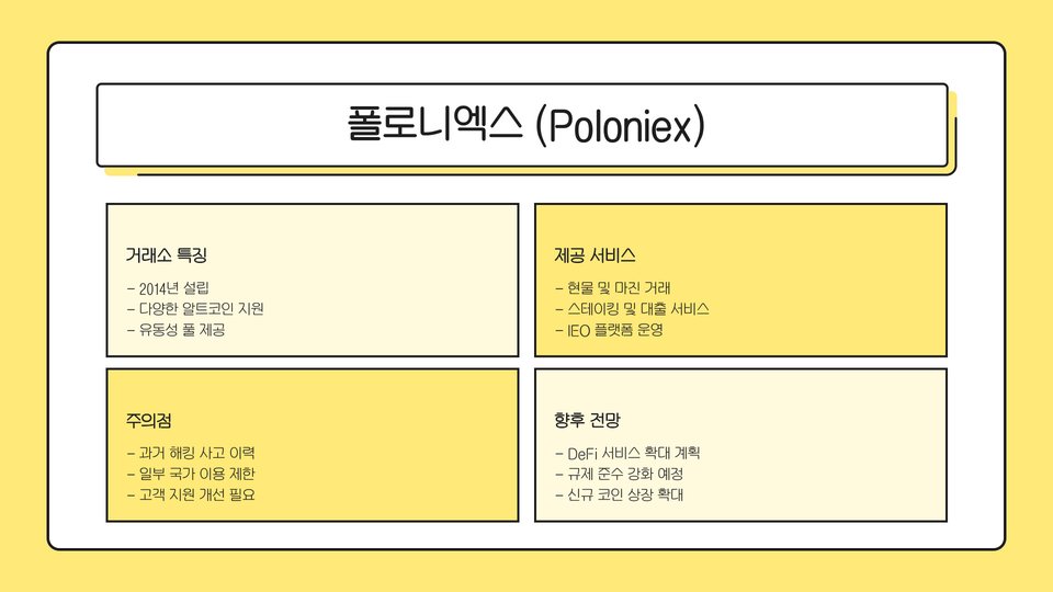 해외 코인거래소는 다양한 암호화폐 거래와 높은 유동성, 그리고 보안성으로 많은 투자자들에게 선택받고 있습니다. 각 거래소마다 고유한 특징이 있으므로, 사용자의 필요에 맞는 거래소를 선택하는 것이 중요합니다. 따라서 거래소의 특징과 장단점을 잘 비교하여 자신의 투자 전략에 맞는 최적의 거래소를 선택하기 바랍니다.