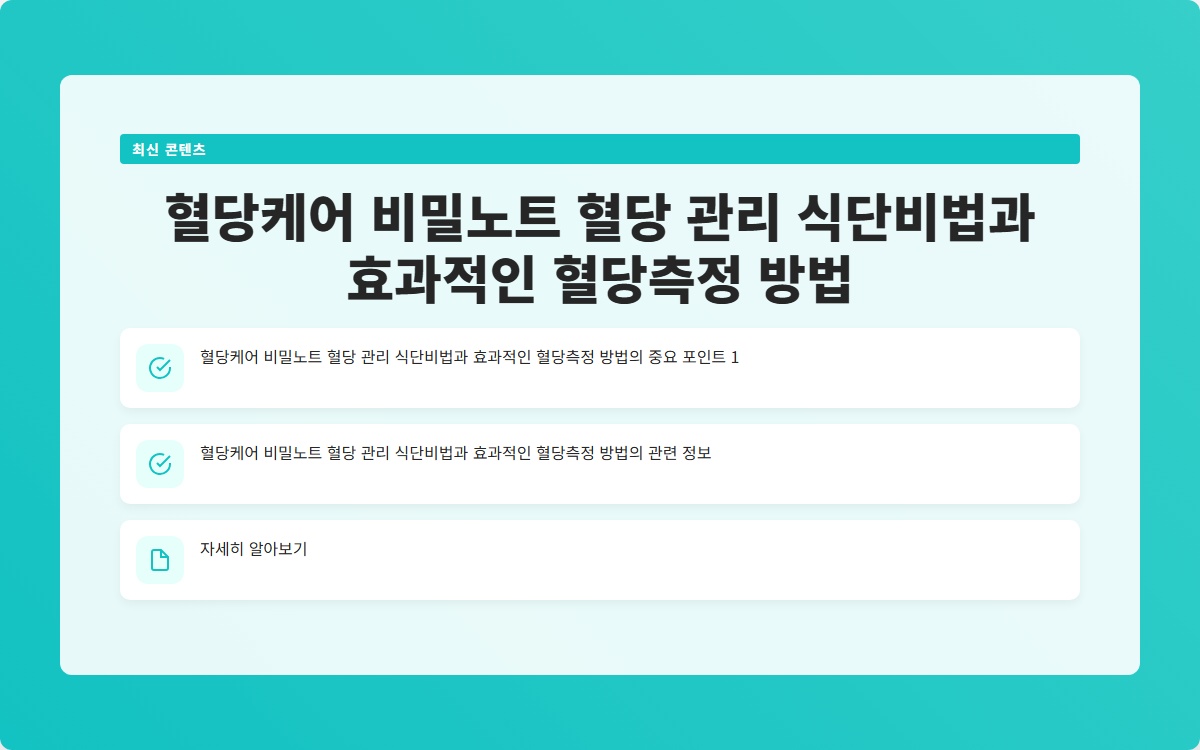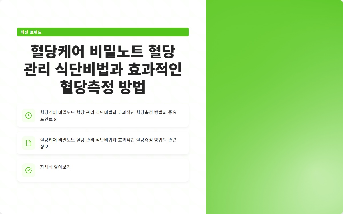 Tags: 혈당측정, 혈당 관리, 식단 비법, 고혈당, 저혈당, 당뇨 예방, 건강한 식습관, 혈당 측정기, 운동, 스트레스 관리