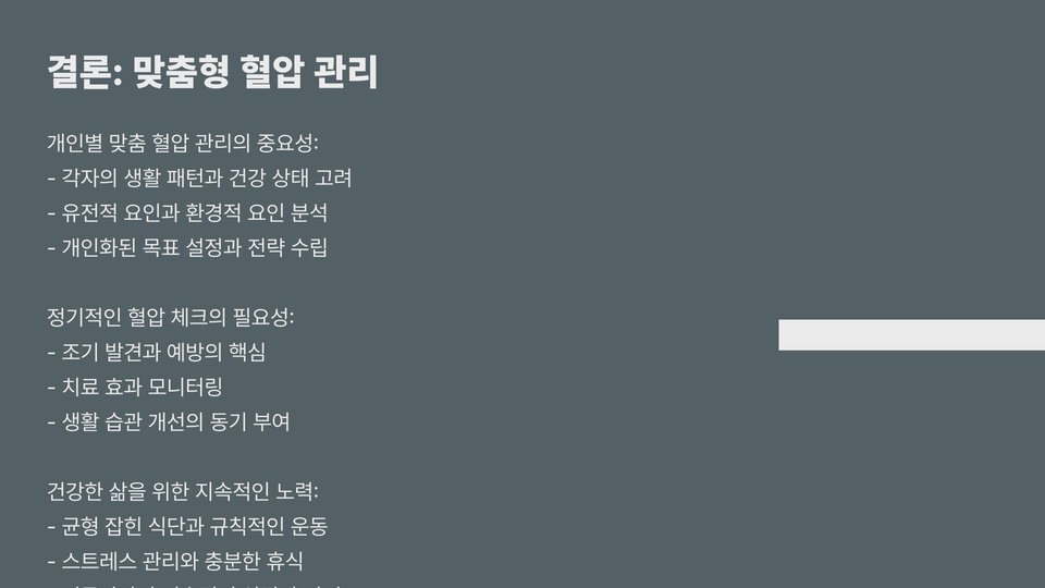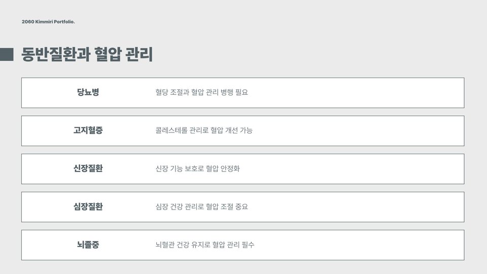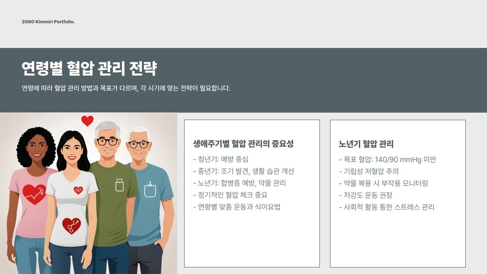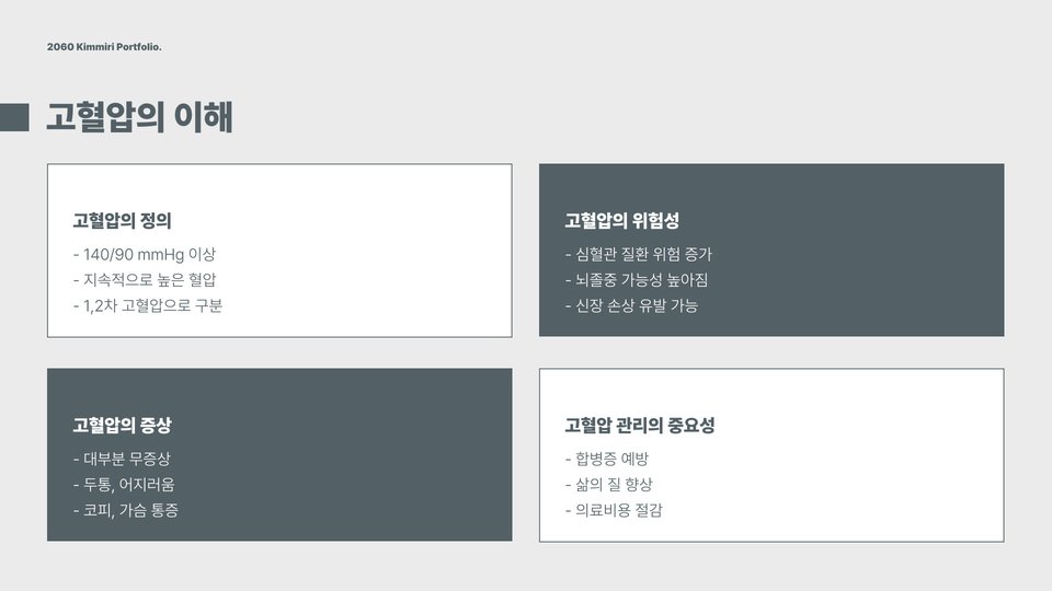 - 정기적인 혈압 측정 및 관리가 중요하다.
